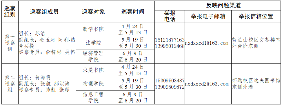 巡察期間,設立舉報電話、舉報信箱及電子郵箱,歡迎廣大師生向巡察組反映有關情況和問題。舉報電話受理時間為工作日上午8:00—12:00;下午14:00—18:00。
