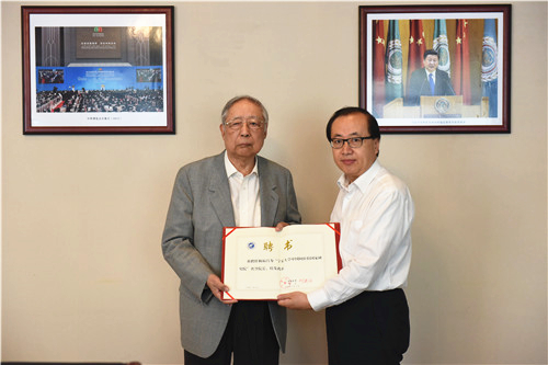 會上,寧夏大學(xué)中國阿拉伯國家研究院院長李紹先為自治區(qū)副主席姚愛興、中聯(lián)部原副部長于洪君、外交部原副部長楊福昌頒發(fā)了“寧夏大學(xué)中國阿拉伯國家研究院”名譽(yù)院長聘書。