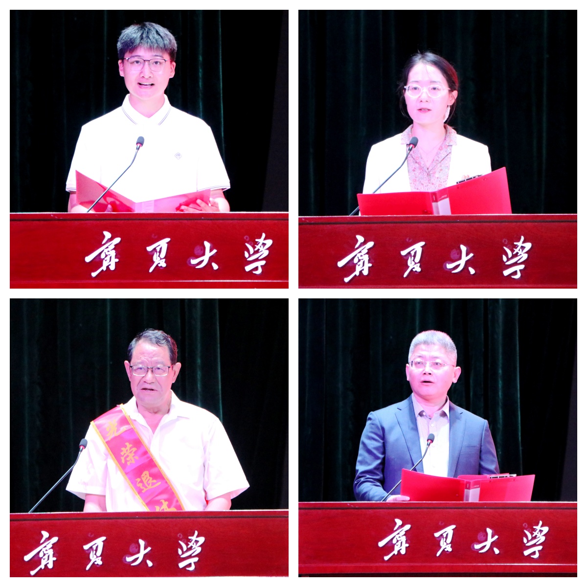 頒獎儀式上,與會領導先后為新入選國家重大人才工程者頒發聘書,為榮休教師代表頒發紀念牌,為從教滿35年教師代表頒發榮譽證書和紀念牌,并為本年度享受國務院特貼的專家、入選國家“萬人計劃”“文化英才”的骨干、自治區“塞上英才”、全國高校教師教學創新大賽中斬獲佳績的優秀教師以及入圍第四批“全國高校黃大年式教師團隊”代表頒獎。