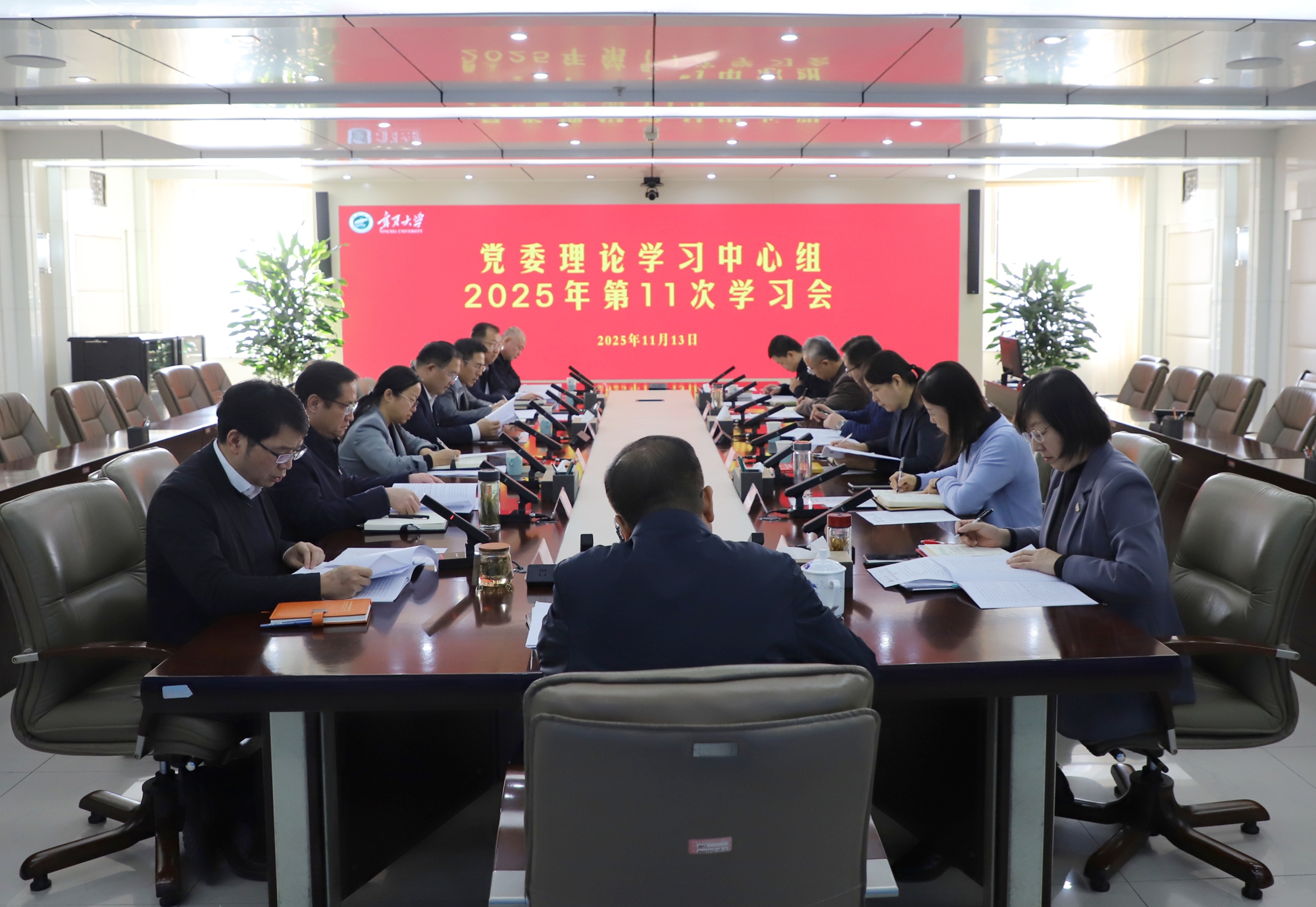 【寧夏大學新聞中心訊 姬曉姍 文/圖】11月13日,校黨委理論學習中心組2025年第11次學習會在德勤樓召開,專題圍繞學習貫徹黨的二十屆四中全會精神開展學習研討,校黨委書記王宏偉主持會議,校黨委理論學習中心組成員參加學習會。