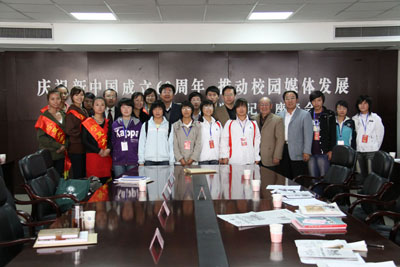 寧夏新聞網訊(記者 李靜)為慶祝新中國成立60周年,進一步推動校園媒體建設發展,10月15日,寧夏大學召開校園媒體學生記者座談會,學生記者和老師相互交流,各抒己見,共促寧大校園媒體繁榮發展。